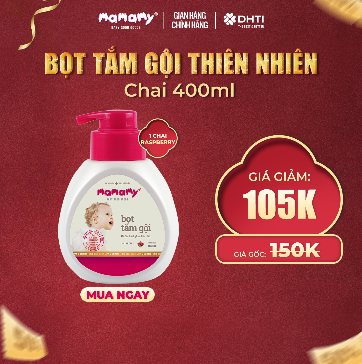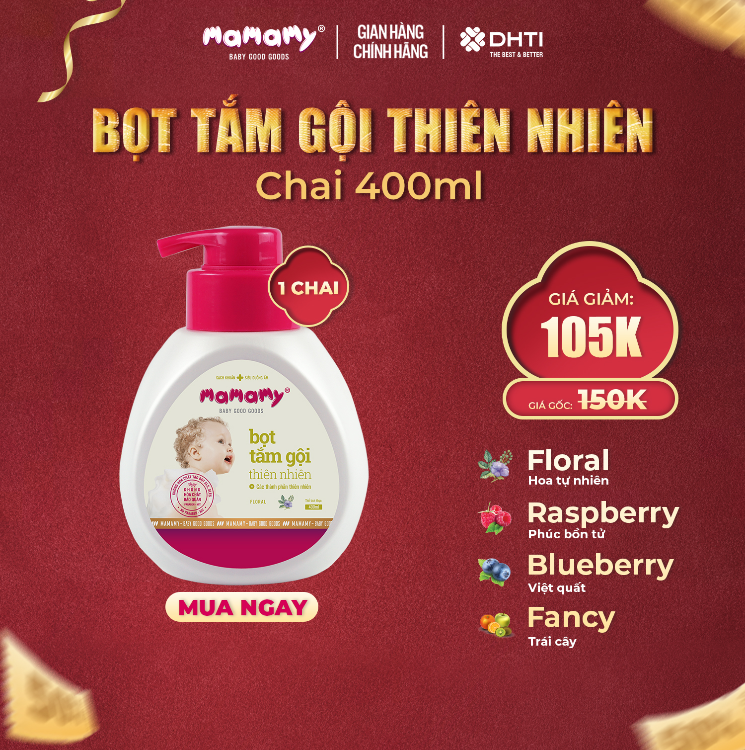 Chai Bọt tắm gội thiên nhiên Mamamy cho bé 400ml