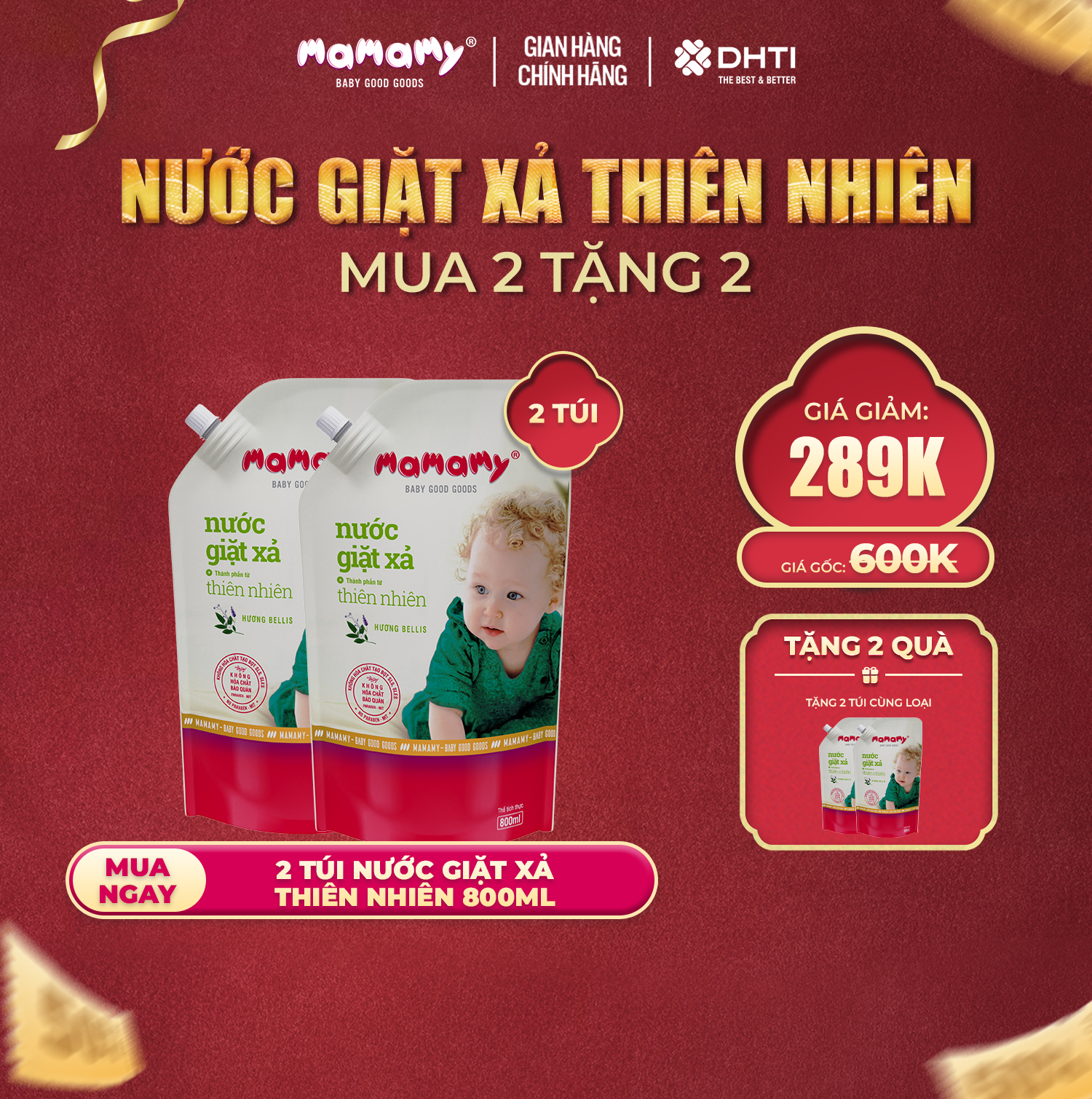 Nước giặt xả thiên nhiên Mamamy là sản phẩm giặt xả có nguồn gốc từ thực vật đem lại sự an toàn cho làn da của bé và được hội phụ sản VN khuyên dùng.