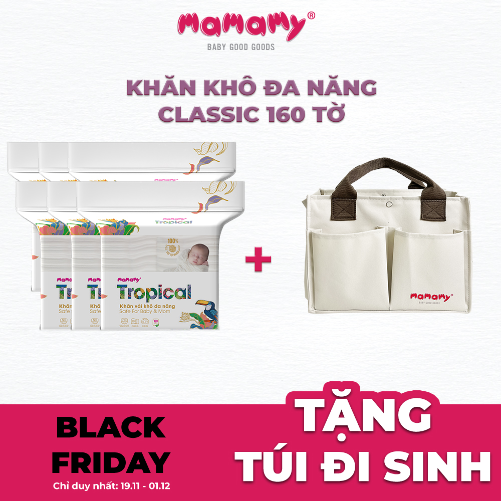 [Tặng Túi đi sinh Mamamy] Combo 6 gói Khăn khô Tropical 160 tờ