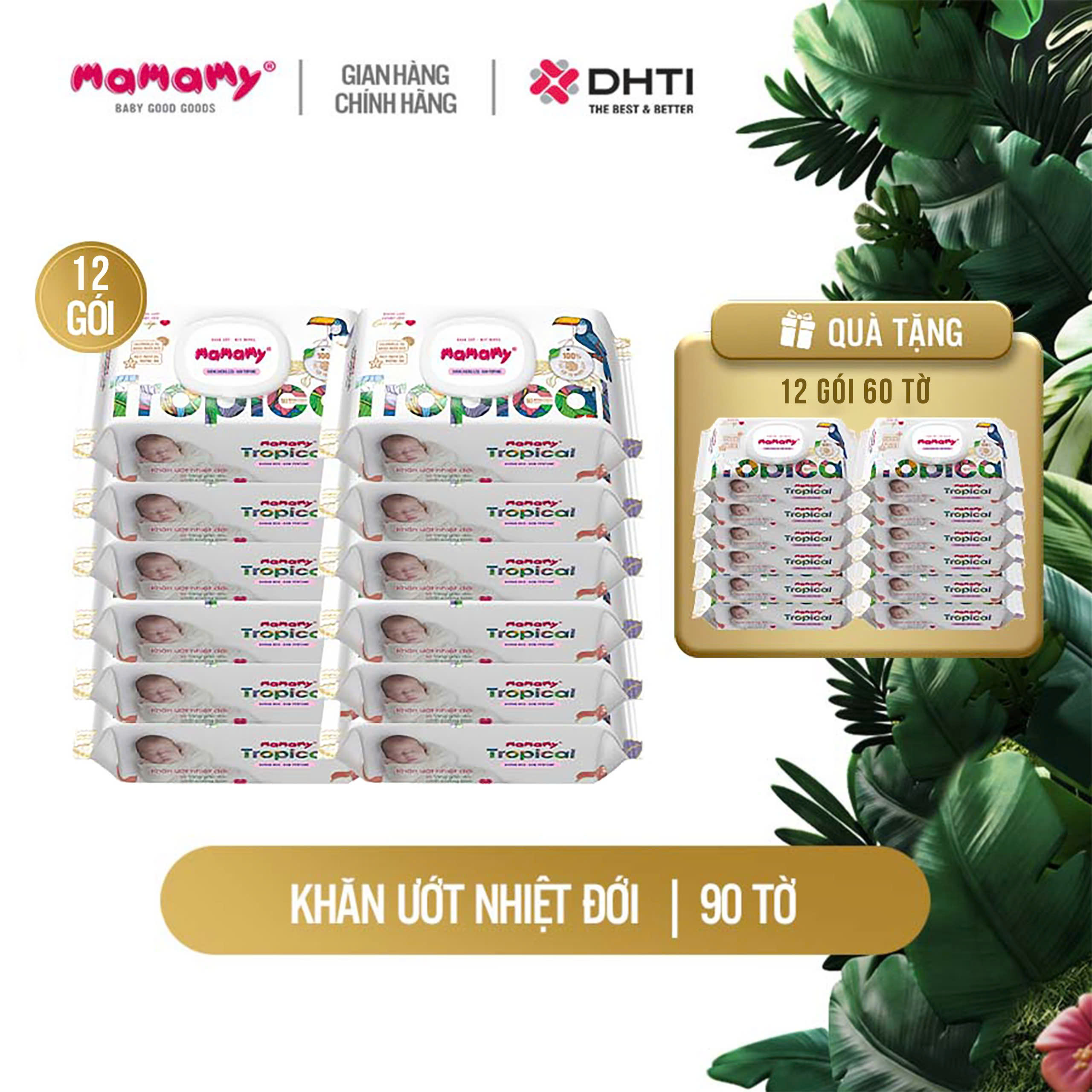 [Tặng 12 gói khăn ướt 60 tờ] 12 gói Khăn ướt Tropical 90 tờ tặng 12 gói 60 tờ không hương thơm