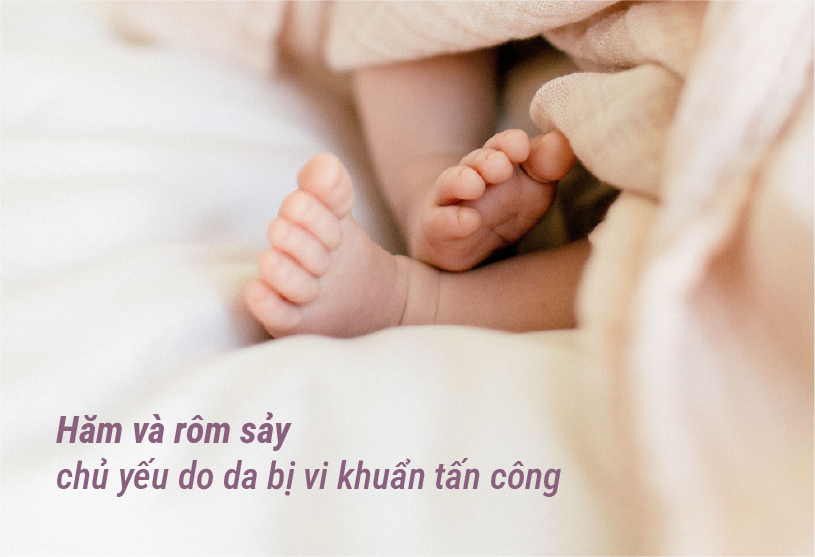 Hăm và rôm sảy (viêm da) là do da bị yếu, dễ tổn thương và bị vi khuẩn tấn công. Da khô là lúc da đang yếu nhất.