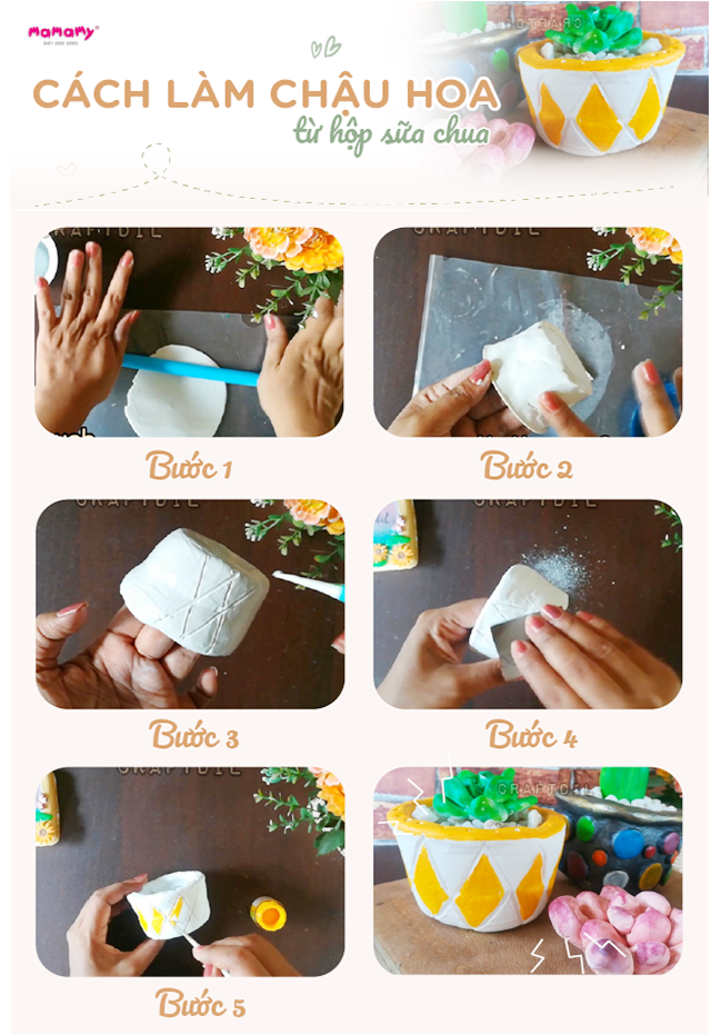 Mẹ có thể xem chi tiết cách làm chậu hoa bằng hộp sữa chua theo nhiều ý tưởng ở video của Craftdil để thực hiện cùng bé (Nguồn: Craftdil)