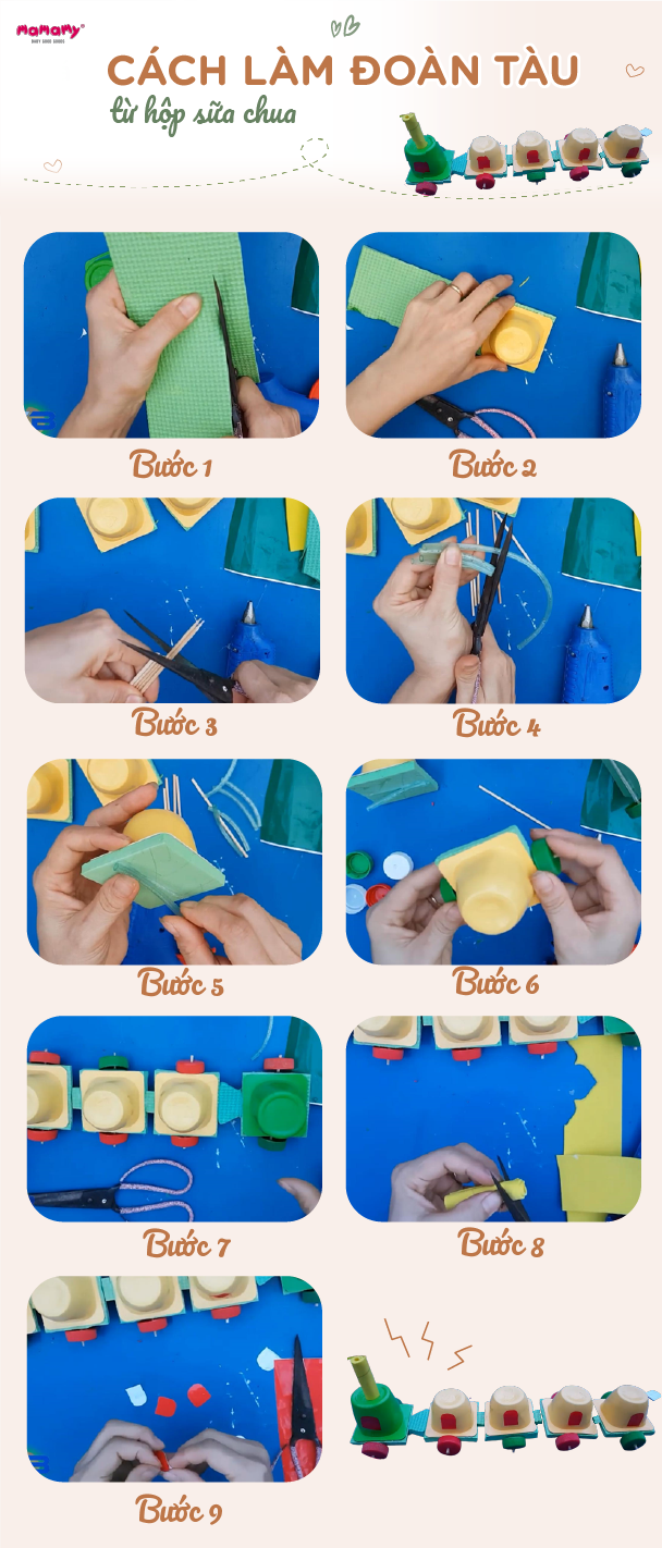 Bé sẽ có cơ hội sáng tạo nhiều hơn khi tự tay làm đồ chơi từ hộp sữa chua. Hãy theo dõi Góc của mẹ để biết thêm về cách làm đoàn tàu từ hộp sữa chua qua bài viết dưới đây nhé!