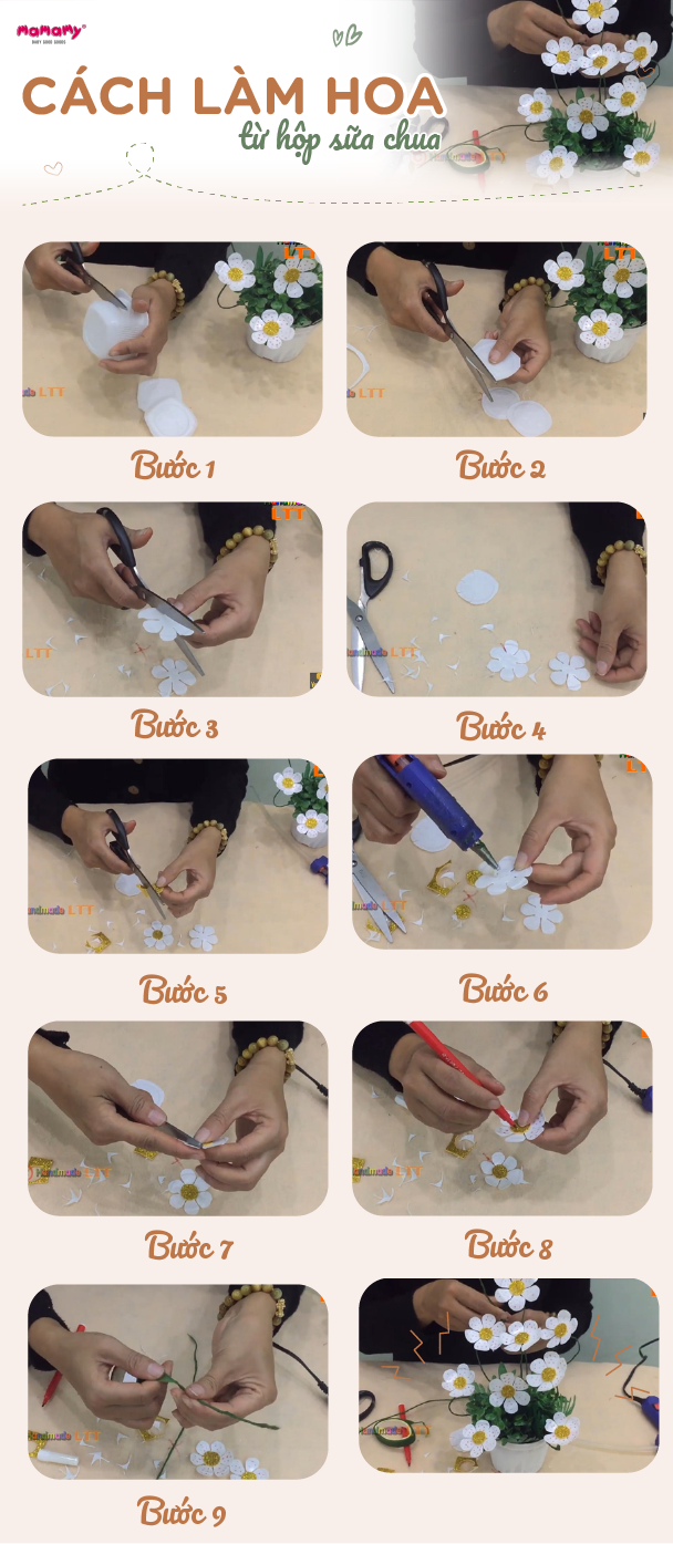 Các cách làm đồ chơi bằng hộp sữa chua đang được các mẹ “săn đón” nhiệt tình vì sự dễ làm và tiết kiệm của chúng. Để biết cách làm hoa từ hộp sữa chua, mẹ hãy tham khảo các bước làm dưới đây nhé