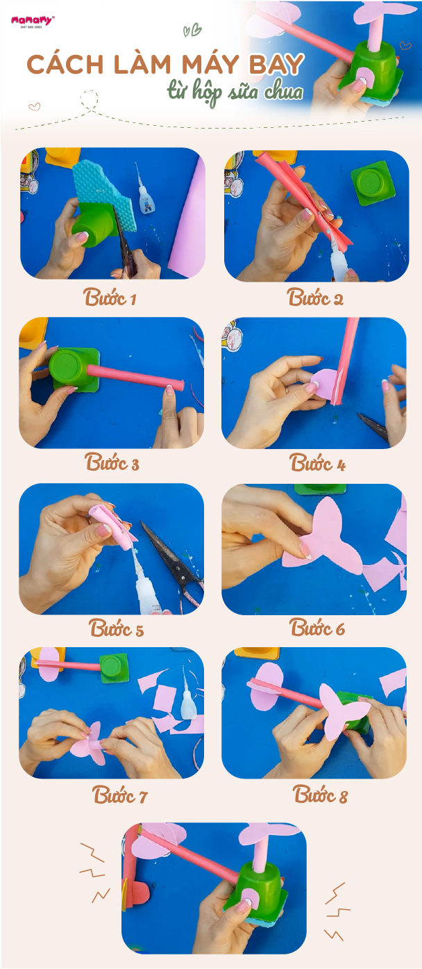 Mẹ muốn cùng bé làm máy bay từ hộp sữa chua nhưng không biết làm sao cho độc đáo, thú vị. Đừng lo mẹ nhé, dưới đây sẽ là các bước làm giúp mẹ có thể thực hiện cùng bé đó mẹ ạ
